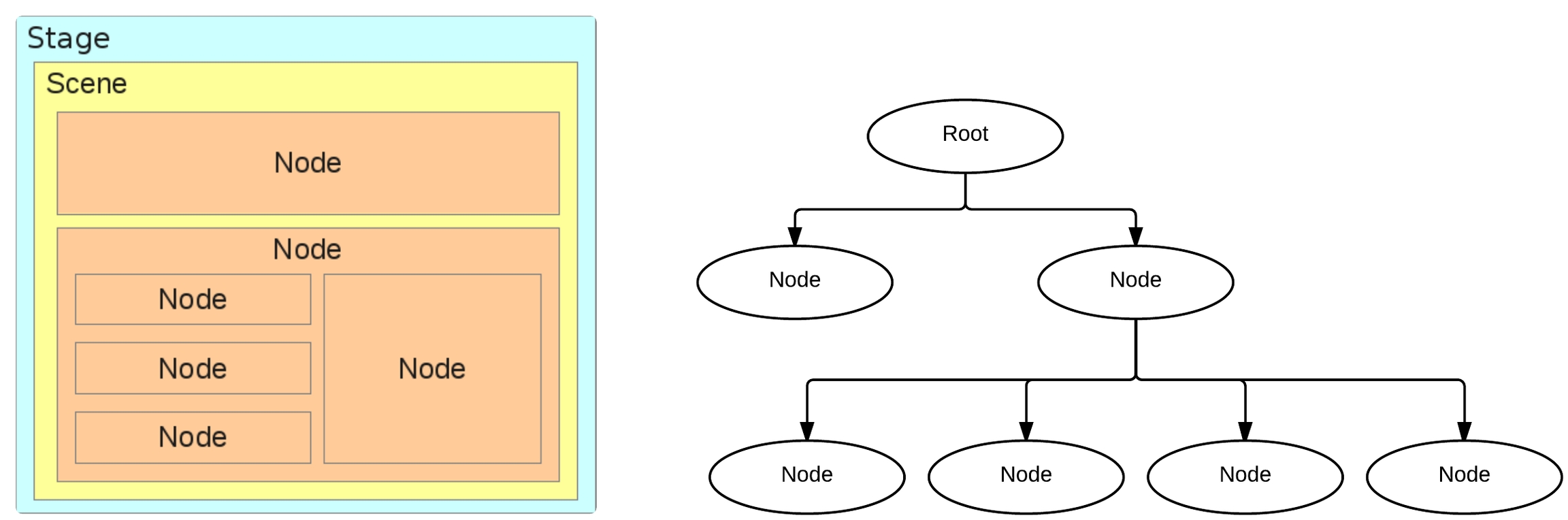 The diagram below shows an abstract example of a scene and its scene graph.